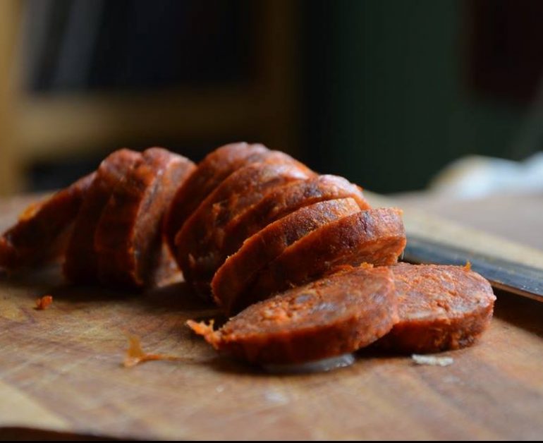 hagyományosan tartott disznóból készült, összetevők: sertéshús, só, paprika, köménymag, fokhagyma. Nem tartalmaz nitritet!